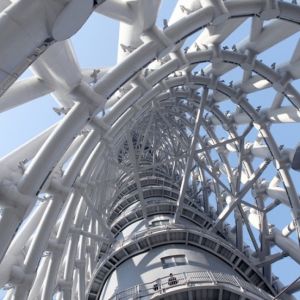 廣州塔由一座454米的塔身和156米的鋼結構桅桿組成,總高610米。塔身由鋼結構外框筒和鋼筋混凝土核心筒構成。內外框筒通過樓層結構相連,但樓層缺失一半。焊接工作是廣州塔項目高難度工作之一,鋼結構外筒均采用鋼管構件,高空節點均為等強焊接連接。從保證焊接質量、提高焊接功效、減少焊